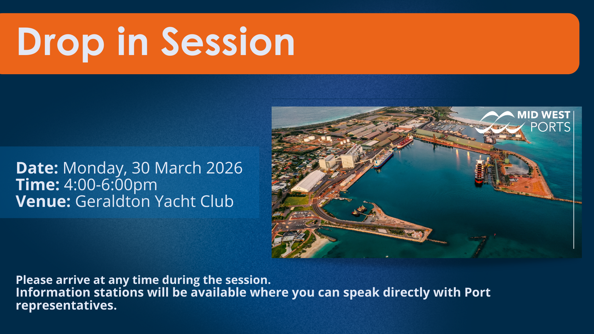 Mid West Ports is holding a Community Information Session to share information and answer questions about the proposed handling of ammonium nitrate at the Port of Geraldton.